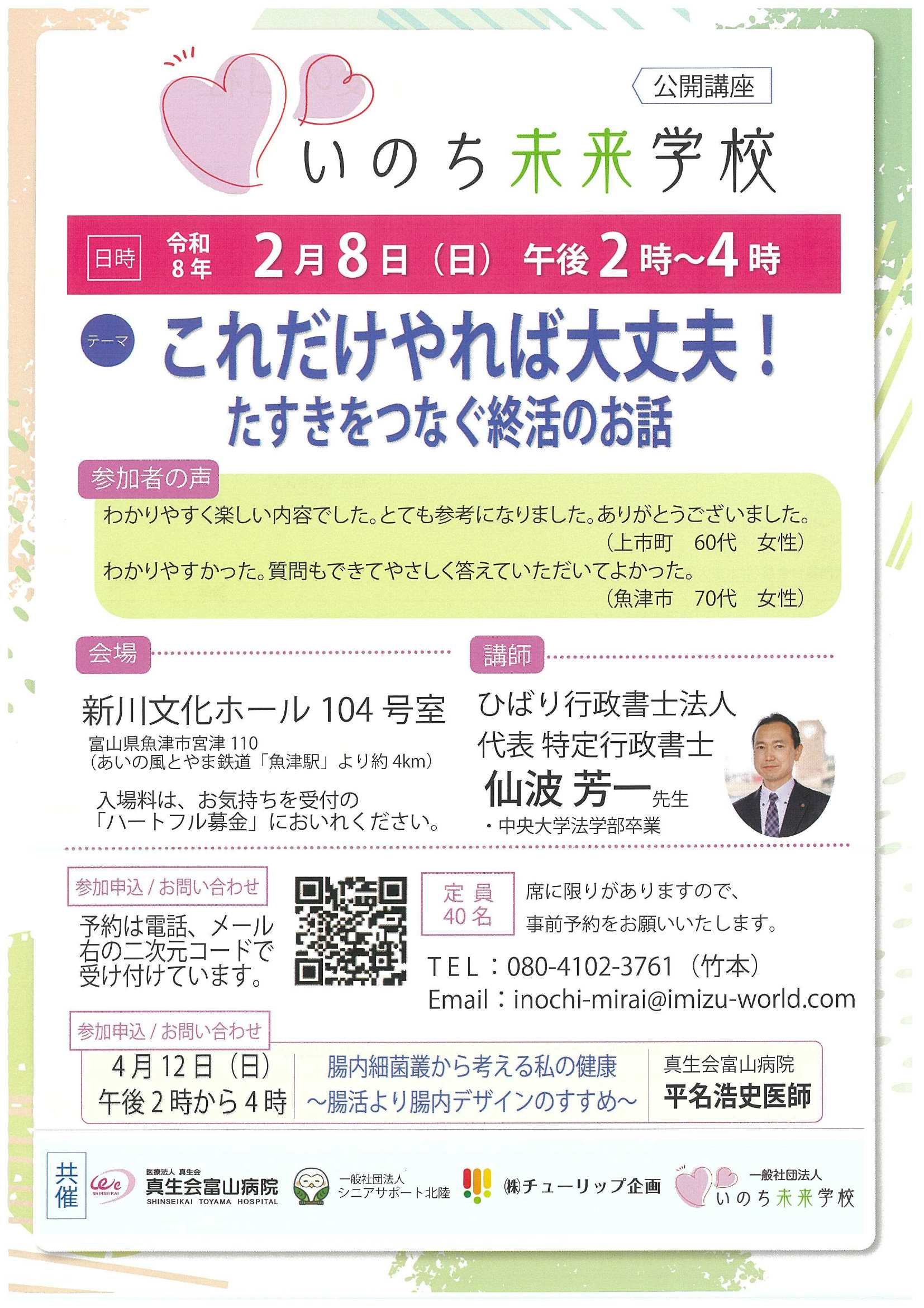 (一社)いのち未来学校 〈共催〉真生会富山病院、(一社)シニアサポート北陸、(株)チューリップ企画