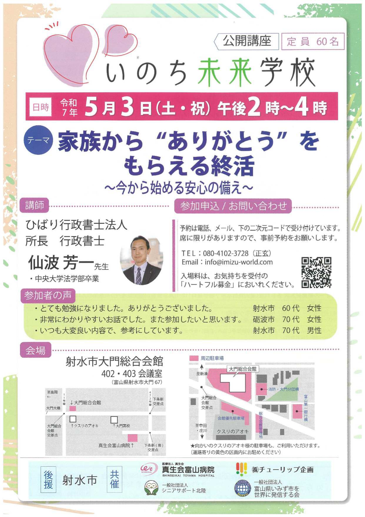 (一社)いのち未来学校 〈共催〉真生会富山病院、(株)チューリップ企画、(一社)シニアサポート北陸